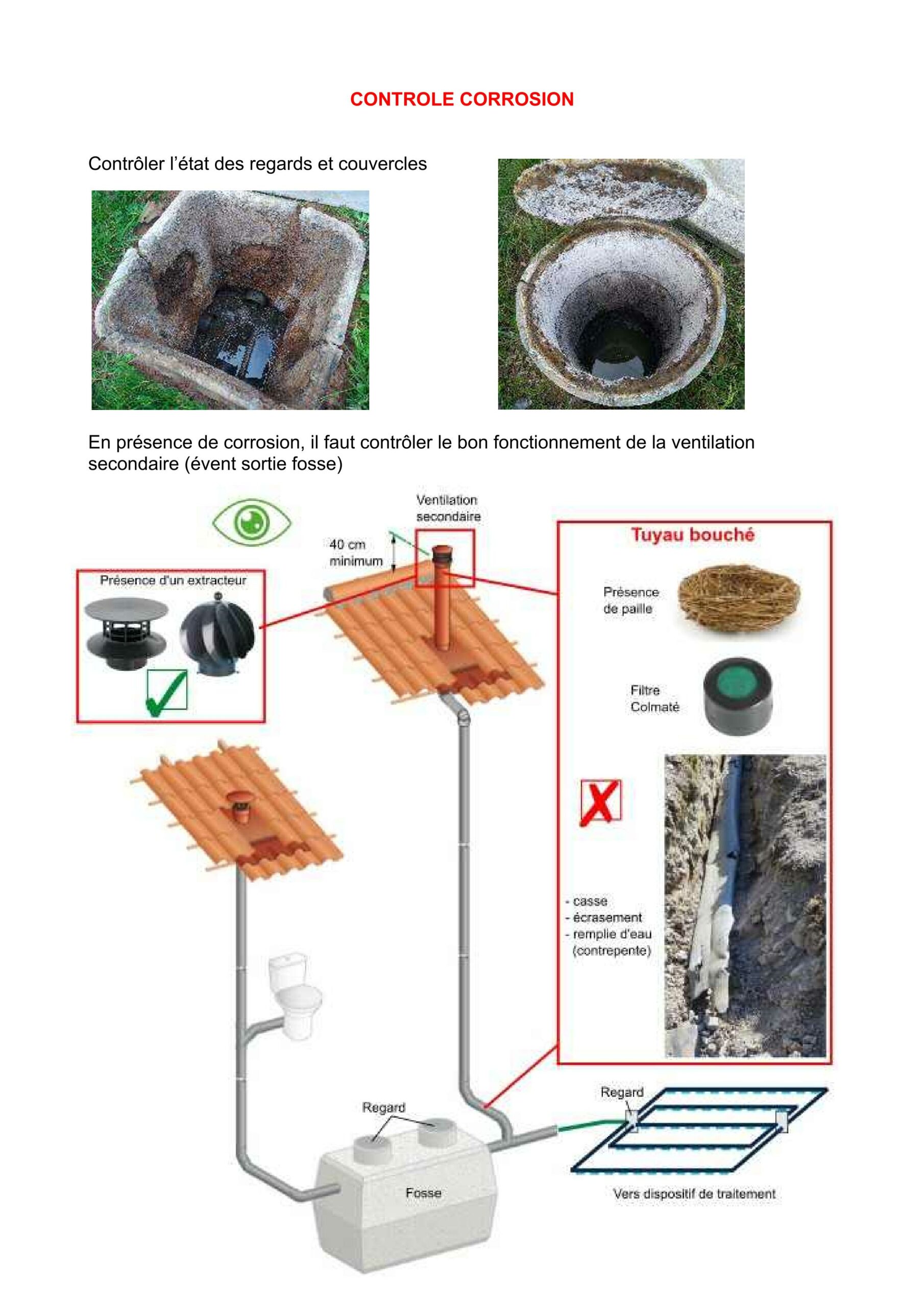 - contrôler régulièrement l’état des ventilations, des regards et du système de traitement ;